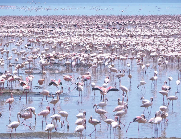 Flamingos and other birds: What makes Lake Nakuru and Lake Nakuru National Park famous and the most sought after places, is the flocks of flamingos that make their life on Lake Nakuru